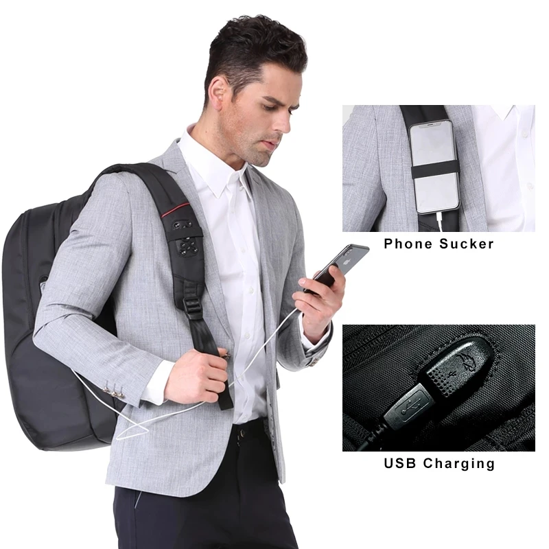 Рюкзак мужской, для ноутбука 13, 15, 17, с USB-портом для зарядки и...