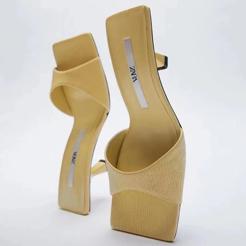 Женские босоножки и шлепанцы ZARZ, желтые туфли с квадратным носком...