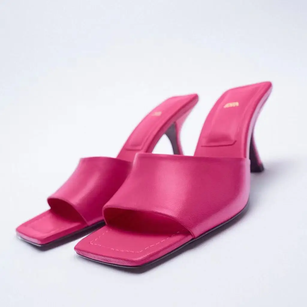 Женские сандалии и тапочки на высоком каблуке-шпильке, розово-красн...