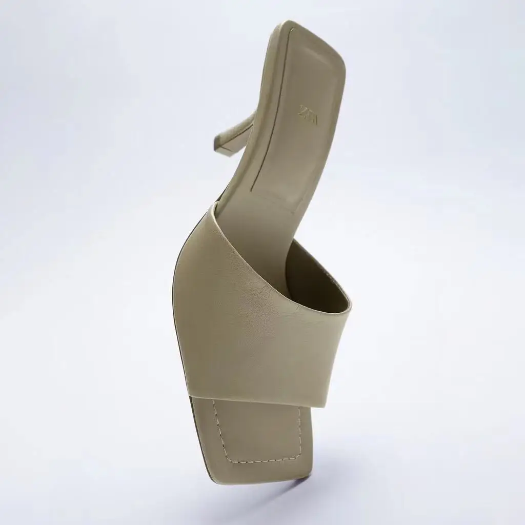 Женские босоножки с квадратным носком ZARZ, бежевые модные туфли на...