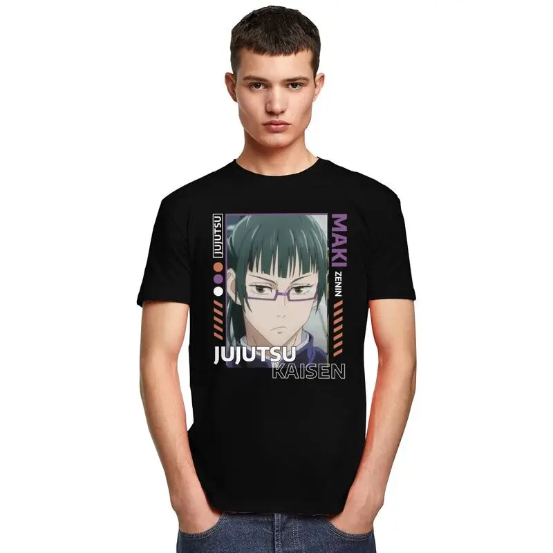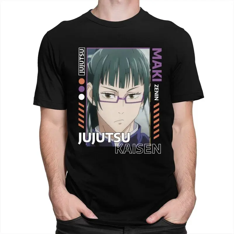Футболка Maki Zenin мужская с коротким рукавом, уличная одежда, Классическая приталенная, из 100% хлопка, ююютсу кайсен, на лето