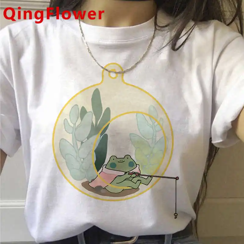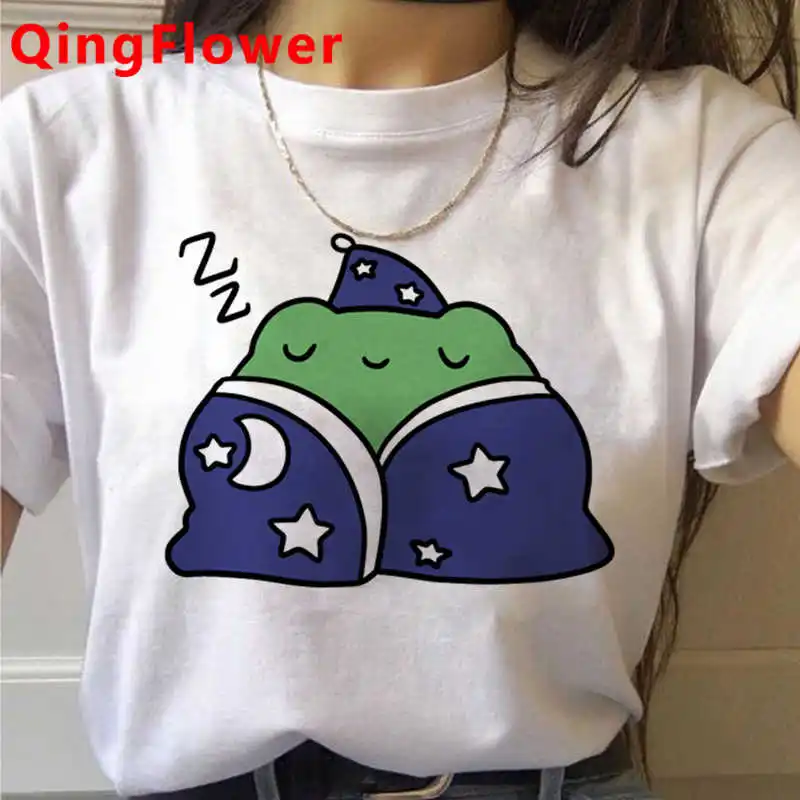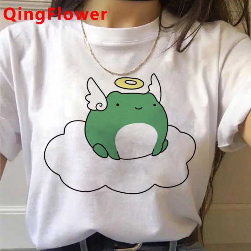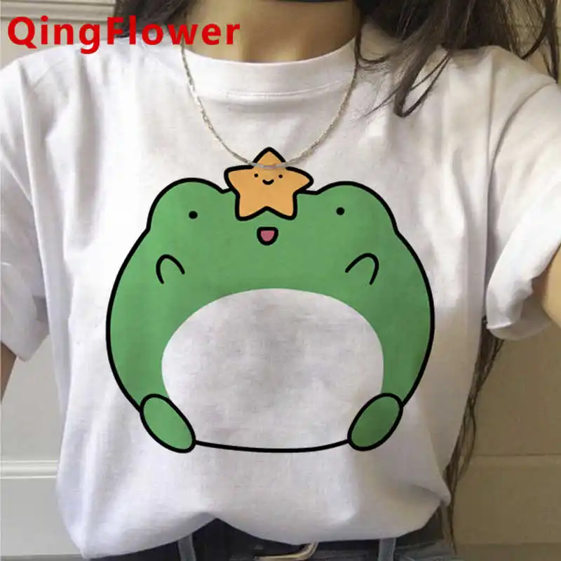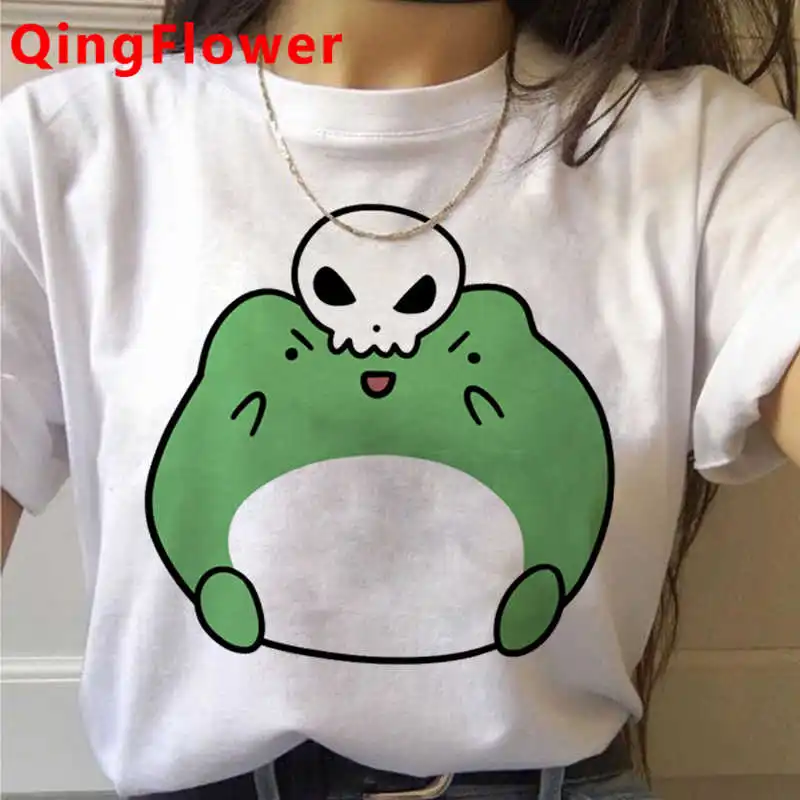 Футболка женская Kawaii с рисунком лягушки, одежда tumblr