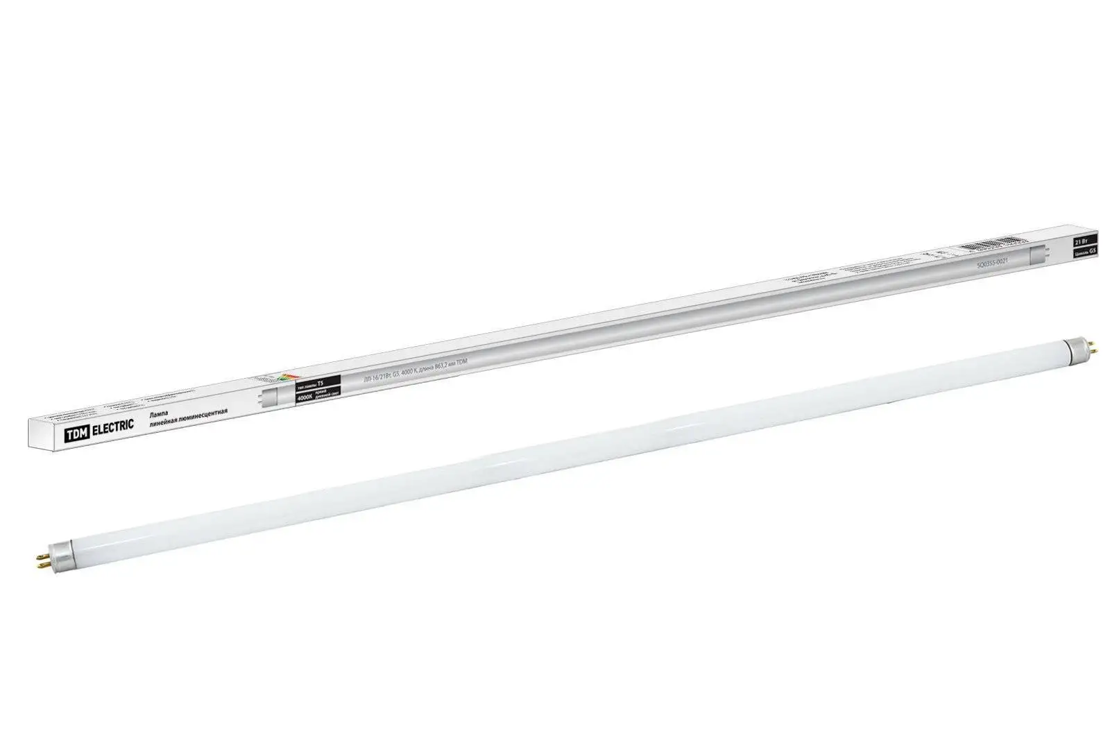 Лампа люминесцентная T5 мощностью 21 Вт, длиной 863,2 мм, диаметром 16 мм, с цоколем G5, цветовая температура - 4000 К. Производитель: TDM