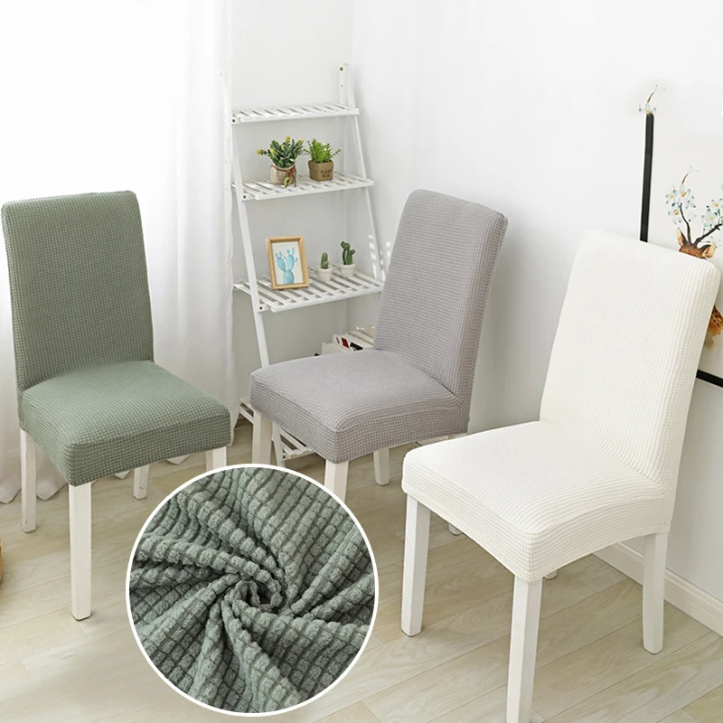 Однотонный чехол для обеденного стула, жаккардовый эластичный чехол...