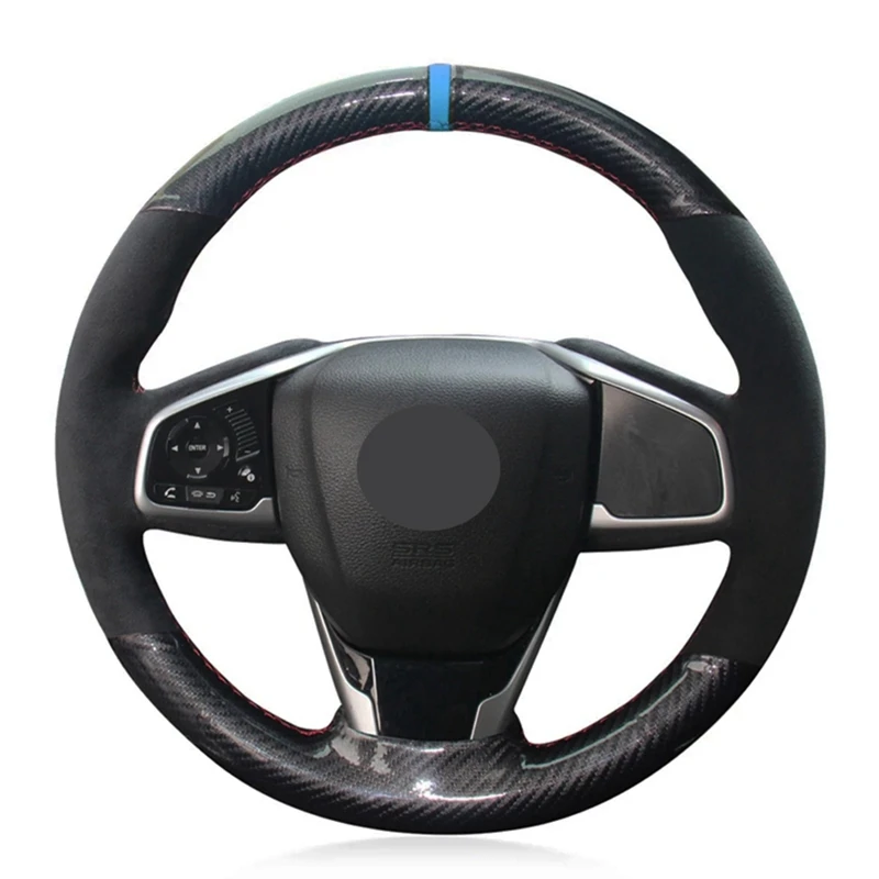 DIY чехол рулевого колеса автомобиля нескользящего черного графита волокна Черная замша для Honda Civic 10 2016-2019 таможенный приходной ордер CR-V 2017-2019 четкость