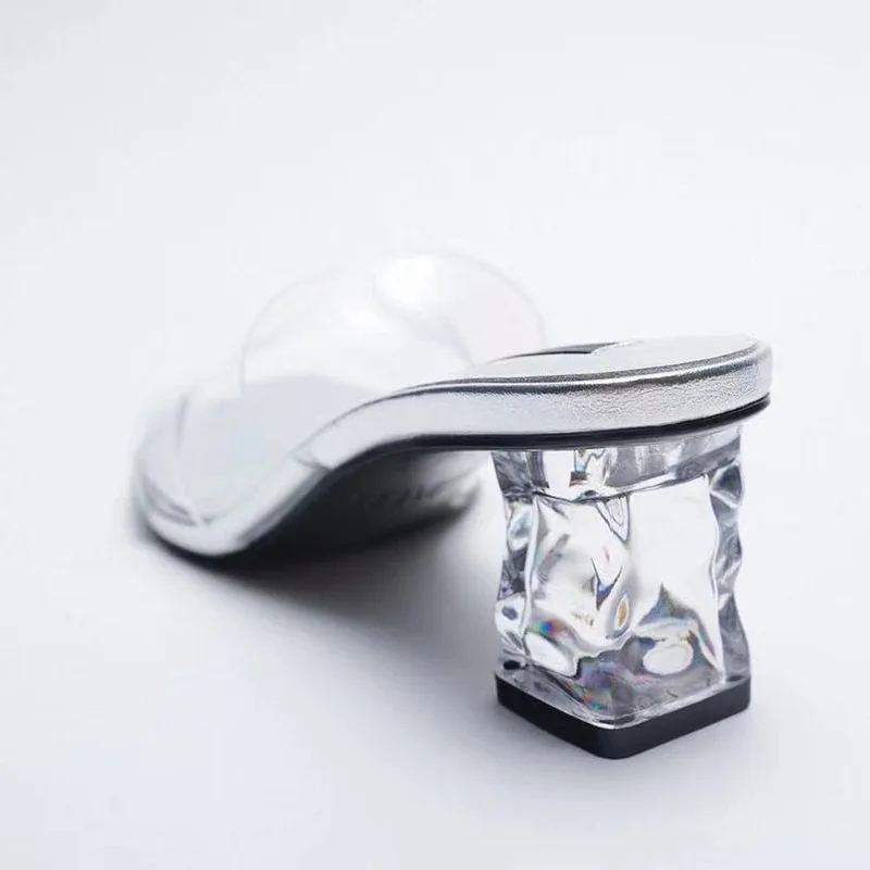 Женские прозрачные сандалии на высоком каблуке, с квадратным носком