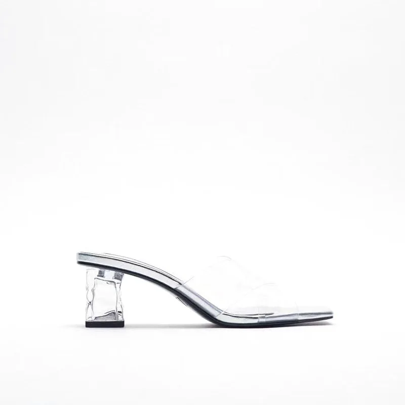 Женские прозрачные шлепанцы на танкетке ZA, модные сандалии с квадр...