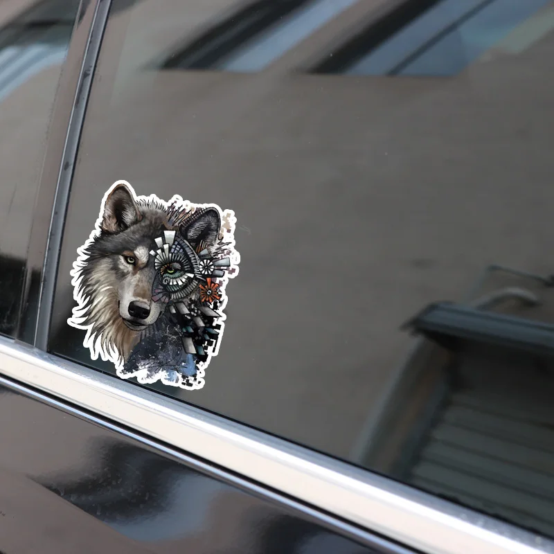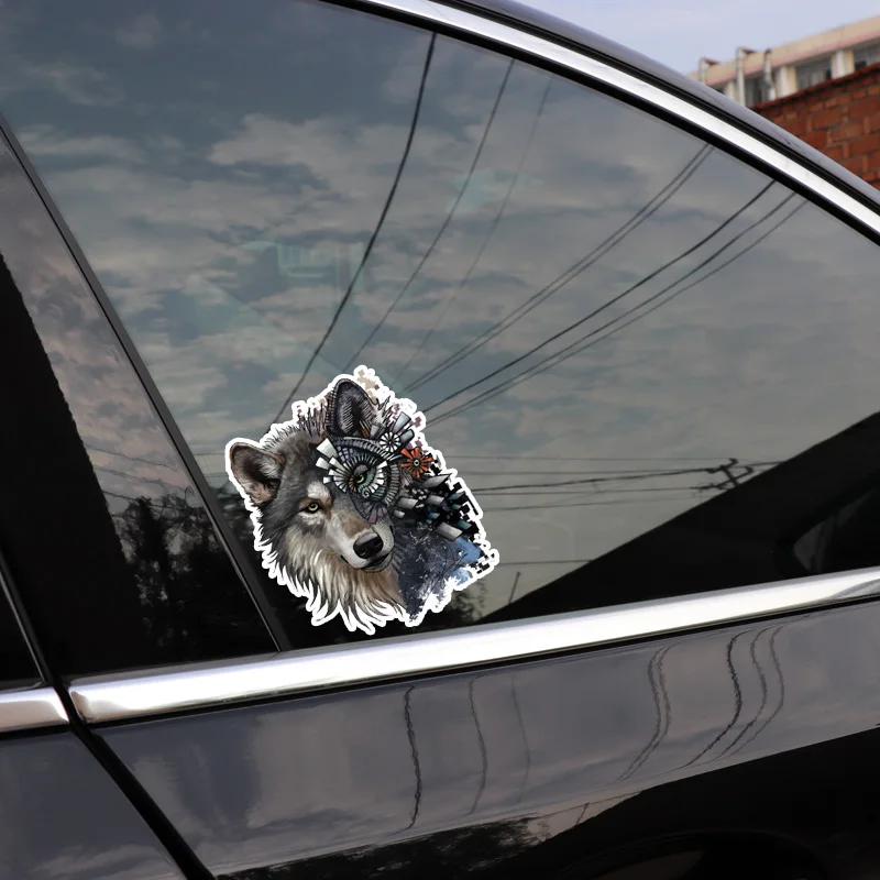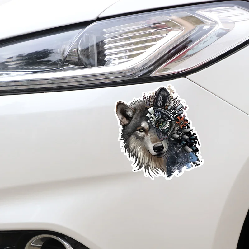 Стильные наклейки Fuzhen, внешние аксессуары, персонализированная искусственная голова волка, автомобильная декоративная наклейка из ПВХ, 15 см