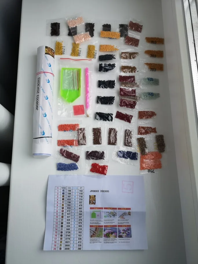 Товар был взят за монеты+0.01$, посылка отслеживалась, пришла через 1.5 месяца.Картина накручена на валик-НЕ помялась. Единственное, не вложены щипцы, а они должны быть в комплекте судя из картинки описания. Рекомендую товар и продавца.