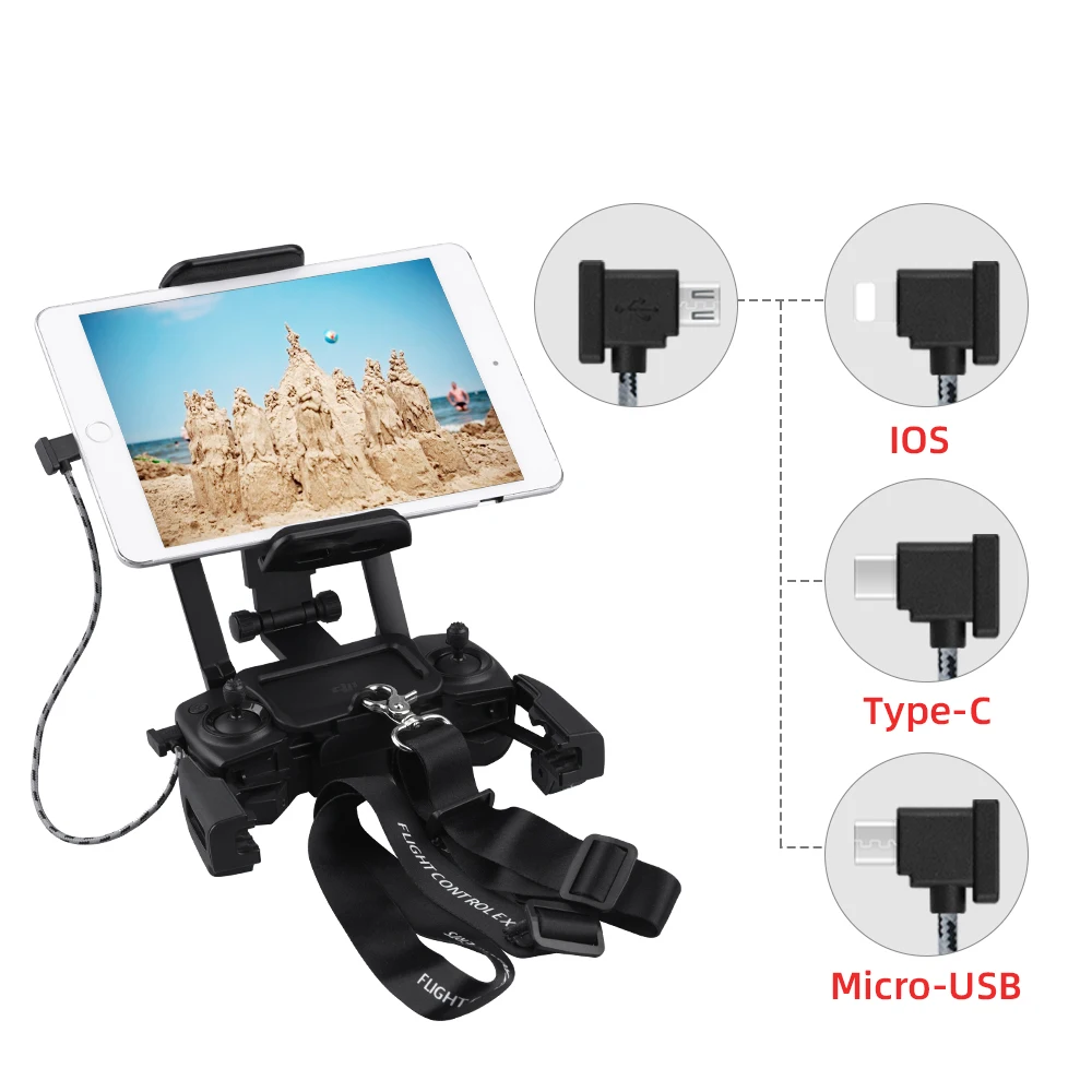 Сделан качественно, фиксируется на пульте Mavic Pro отлично и надежно, с круговым обхватом пульта. Планшет 8" немного покачивается при качании пульта, но свое положение держит. USB кабель фиксируется в разъемах надежно. Нашейный ремешок поддерживает всю конструкцию пульт - планшет, конечно, не по центру тяжести, надо придерживать горизонтальное положение пульта руками (тяжелый планшет все-таки перевешивает). Продавца рекомендую.
