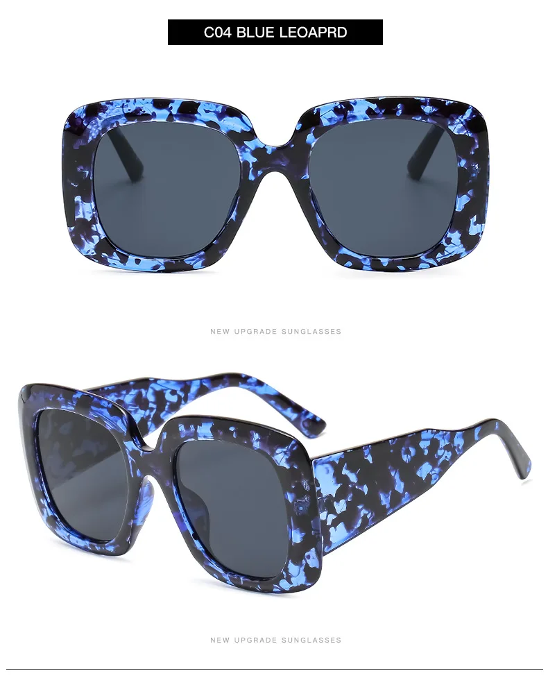Солнцезащитные очки в большой оправе для мужчин и женщин, роскошные брендовые дизайнерские нестандартные солнечные аксессуары с розовыми, черными, квадратными, синими линзами, с леопардовым и белым оттенками