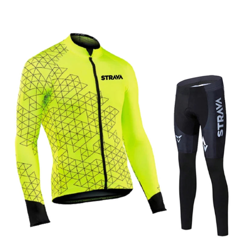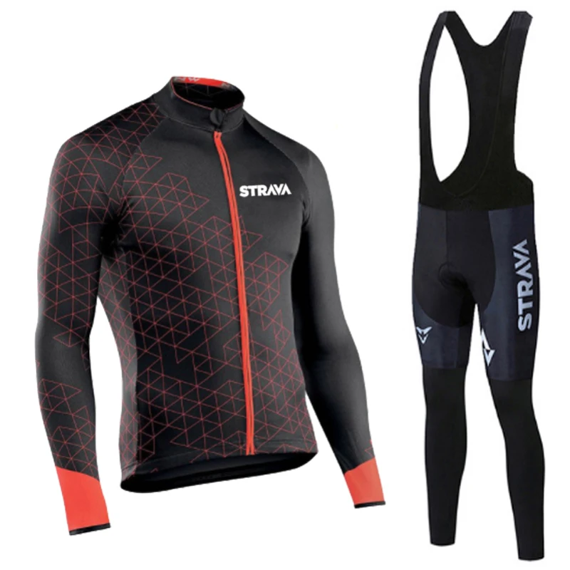 Трикотажный комплект STRAVA с длинным рукавом для велоспорта, штаны с нагрудником, одежда для велоспорта, велосипедная форма, Мужская одежда, осень 2021