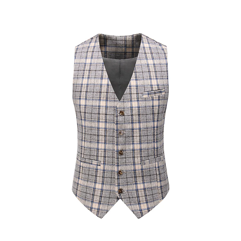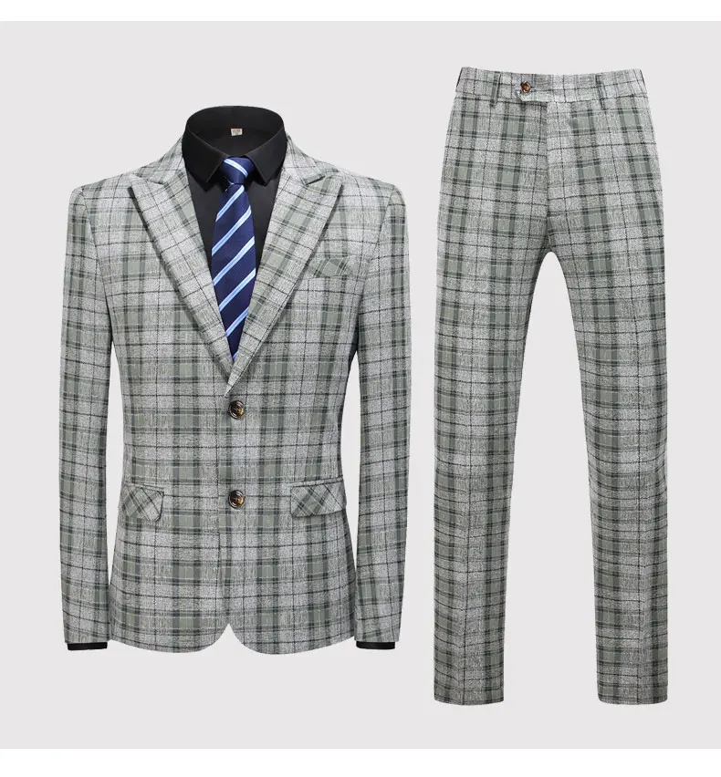 Мужской свадебный костюм, пиджак, жилет, брюки, приталенный, в клетку, повседневный деловой костюм, 3 шт., 2020