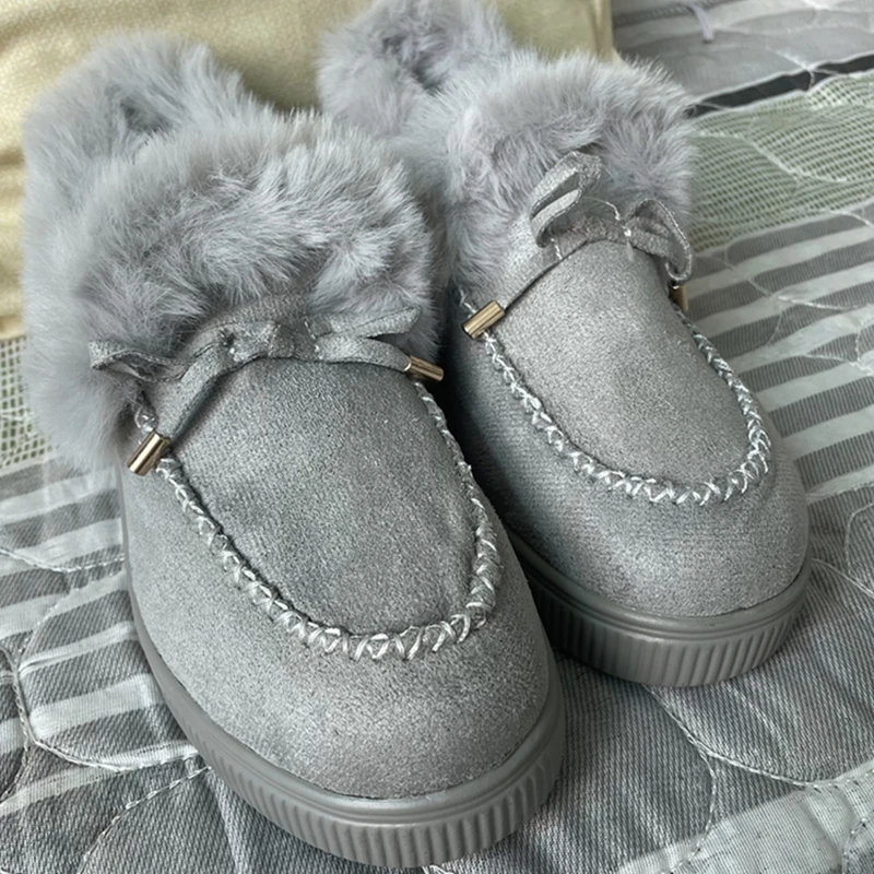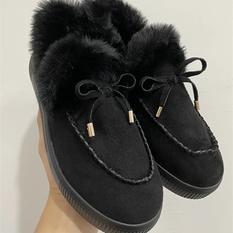 Зимняя женская обувь из хлопка, новинка 2021, женские плюшевые теплые сапоги с бантом, повседневные однотонные короткие сапоги на плоской подошве, женская меховая обувь