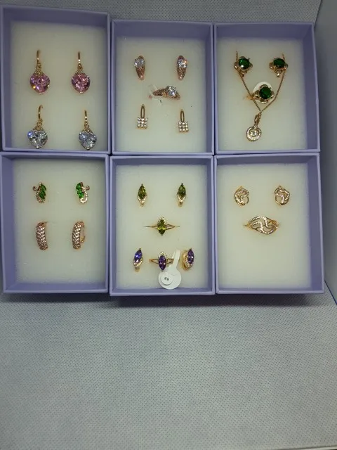 набор отличный красивый цирконий блестящее сверкающие. за такую цену я считаю это отлично набор тем более мы знаем какое там качество. заказываю себе уже второй раз его в первый раз сын у меня забрал из этого набора колечко и подарил подружки. теперь я заказал его второй раз от жадности чтобы он у меня был. серёжки лёгенький Я даже одевала две дырочки на одно ухо смотрелось хорошо и легко.