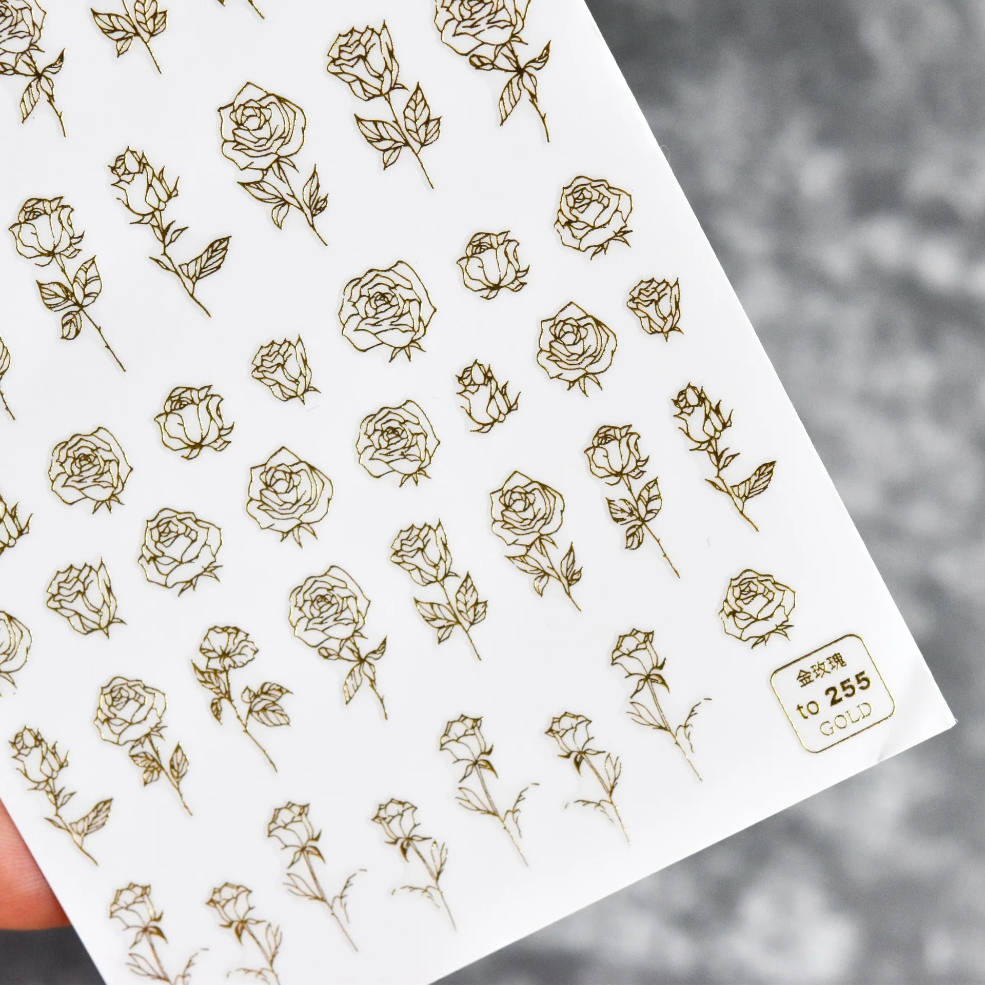 Классические Золотые и розовые наклейки для ногтей, рельефные 3D аксессуары для ногтей, Слайдеры для маникюра, розовое золото, декоративные материалы для дизайна ногтей, сделай сам