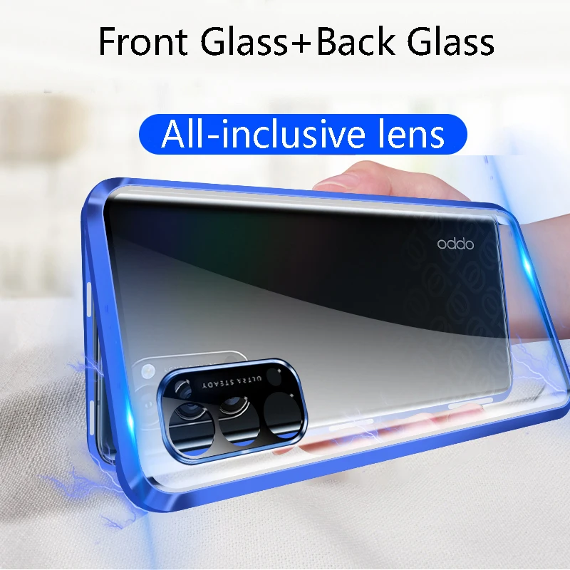 Двухсторонний Магнитный адсорбционный металлический чехол для OPPO Find X3 X50 Pro Realme XT X2 8 4G стеклянная крышка Защитная пленка для объектива камеры