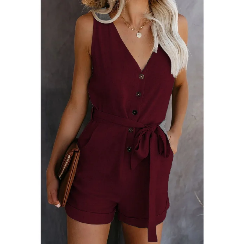 Женский короткий комбинезон с поясом, повседневный однотонный элегантный комбинезон с V-образным вырезом и карманами, лето 2021