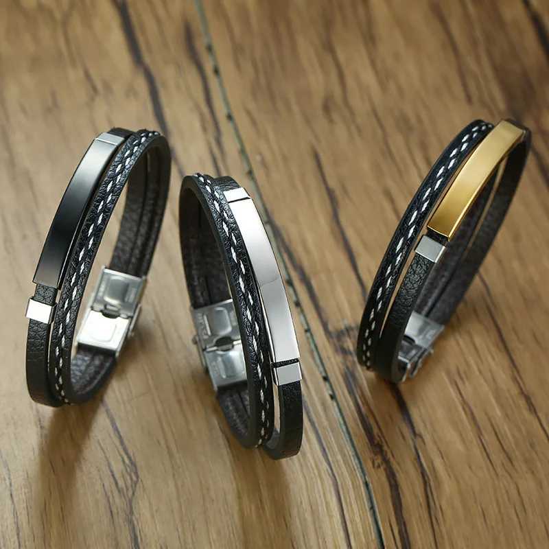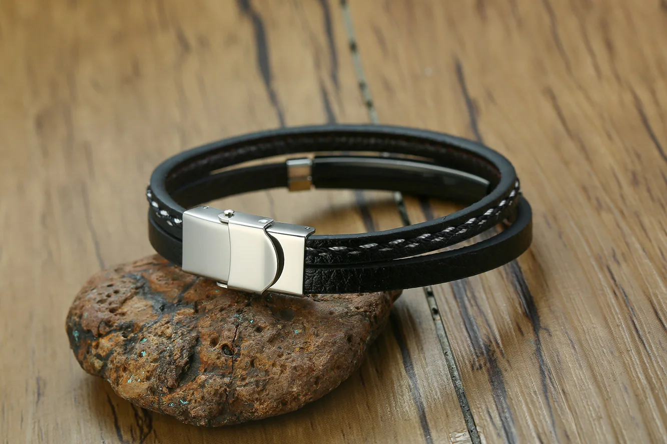 Мужской кожаный браслет, плетеный вручную, многослойный, из нержавеющей стали, 2021