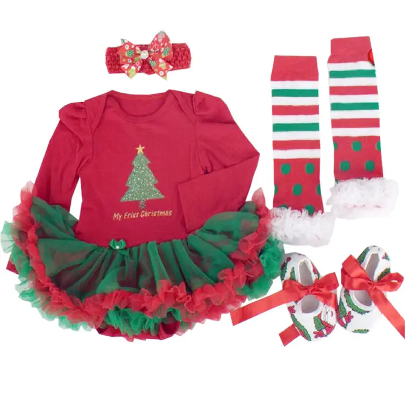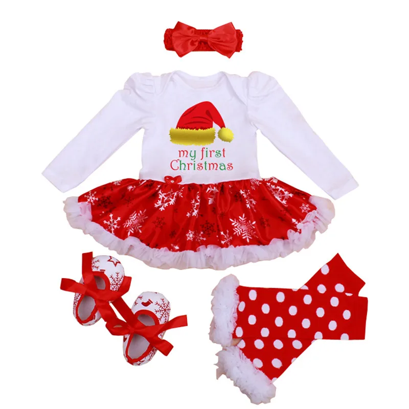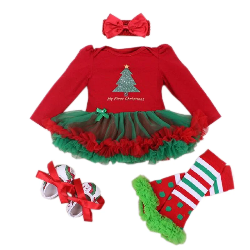 Коллекция 2021 года, милый комплект одежды для новорожденных девочек, комбинезон с длинными рукавами и рисунком рождественской елки и леггинсы комплекты для малышей из 4 предметов Рождественский комплект