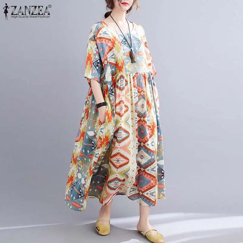 Платье ZANZEA женское в богемном стиле с цветочным принтом, длинный...