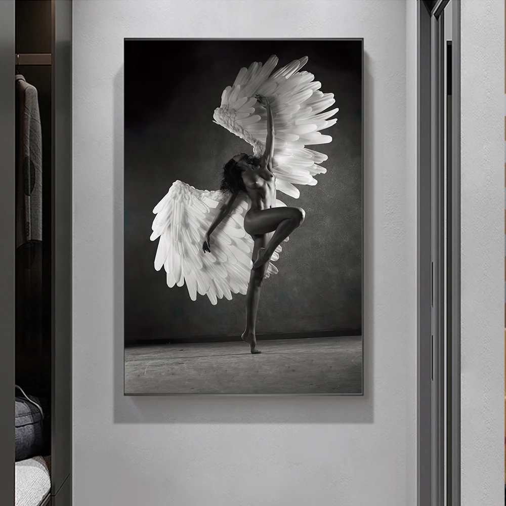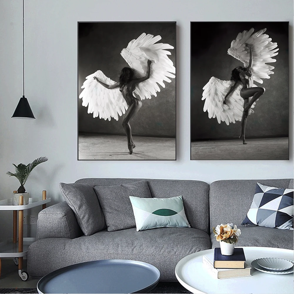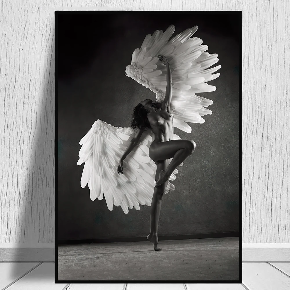 Картина на холсте с изображением танцующей голой девушки ангелов и крыльев
