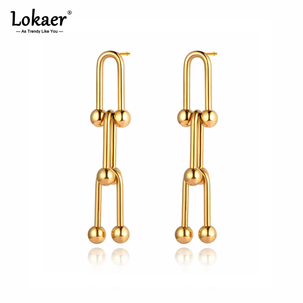 Геометрические серьги Lokaer из нержавеющей стали в стиле хип-хопрок для женщин и девушек, модные богемные вечерние серьги с цепочкой, ювелирные изделия E21067