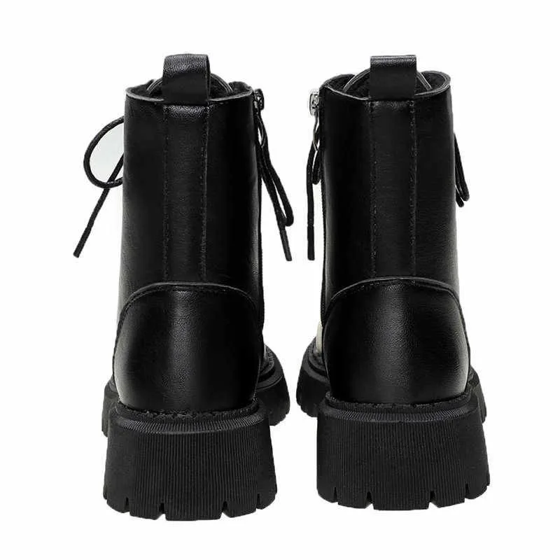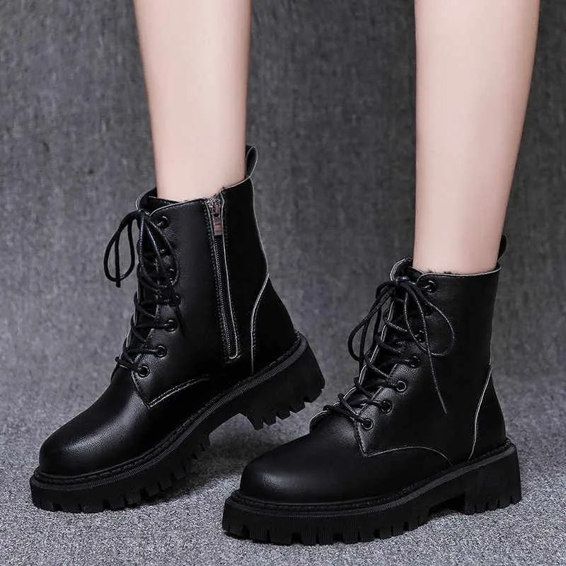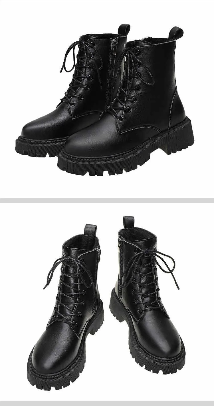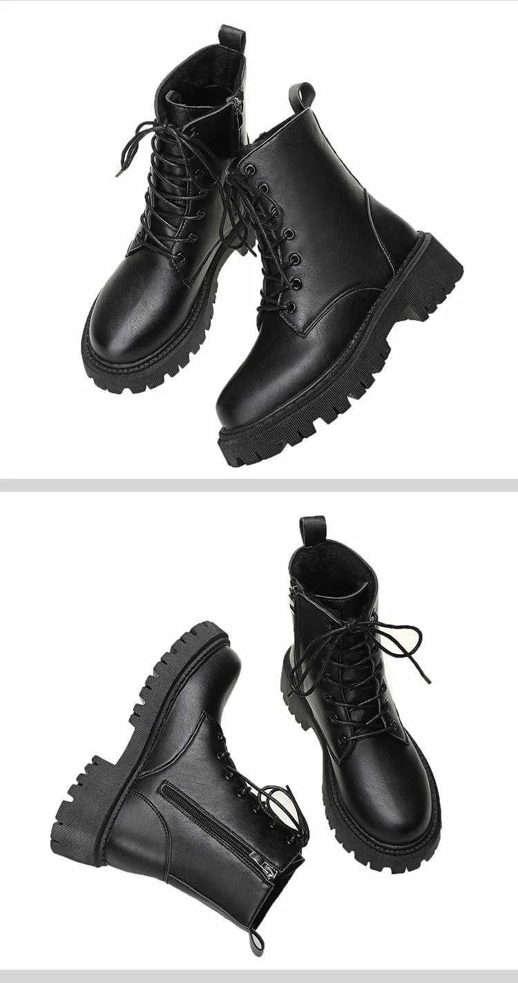 Зимние плюшевые сапоги до колена, женские черные кожаные боевые сап...