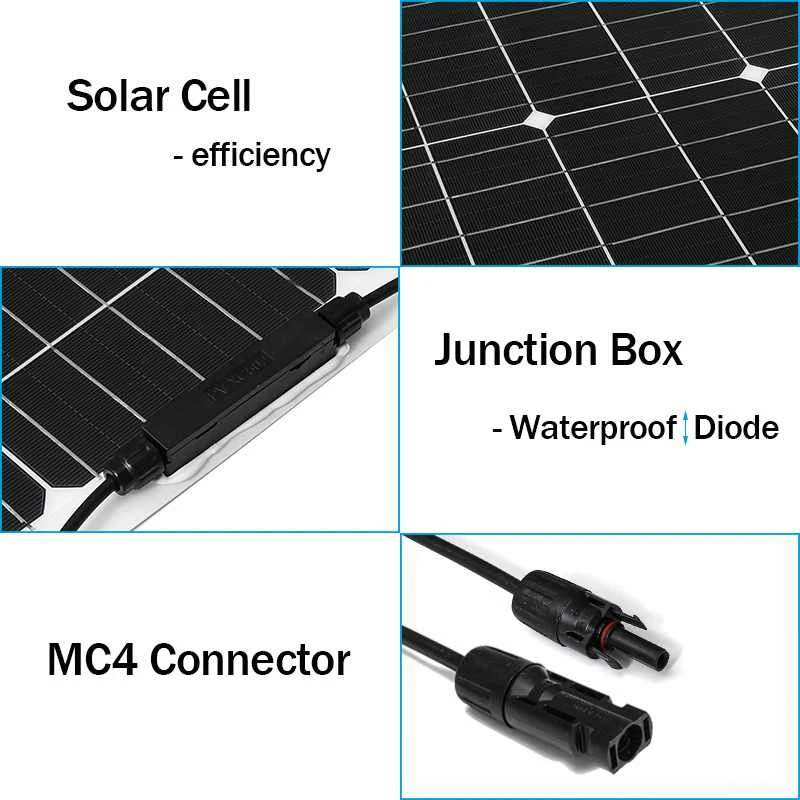 Комплект солнечных панелей 150 Вт300 Вт, Полугибкие монокристаллические солнечные элементы, соединитель для телефона, автомобиля, Автодома, лодки, зарядное устройство на открытом воздухе