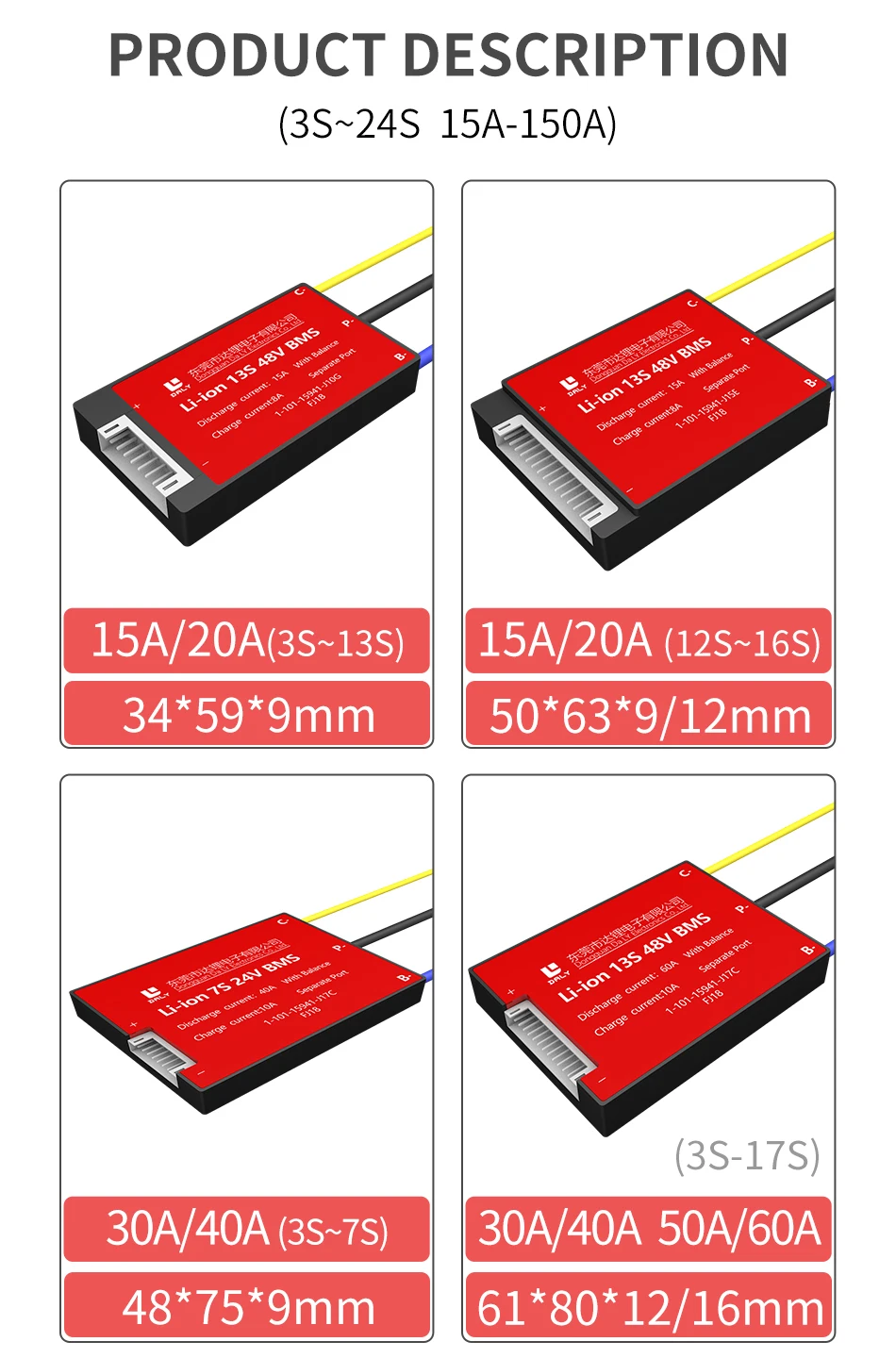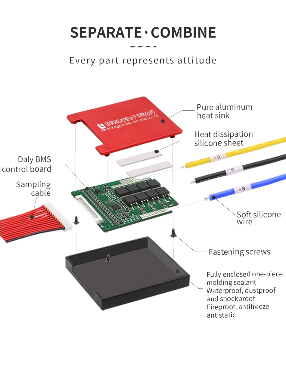 Daly 18650 BMS 3S-24S 15A 20A 30A 40A 60A 80A 100A 120A 150A отдельный порт с балансиром для перезаряжаемого литиевого аккумулятора