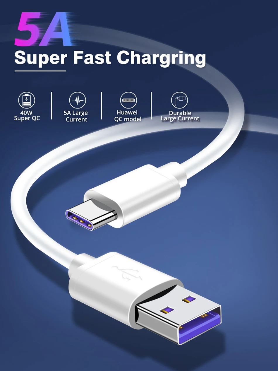 Кабель 5A с суперзарядкой типа C для Samsung S20 S21, быстрое зарядное устройство, шнур для быстрой зарядки телефона Xiaomi Redmi K30 Oneplus