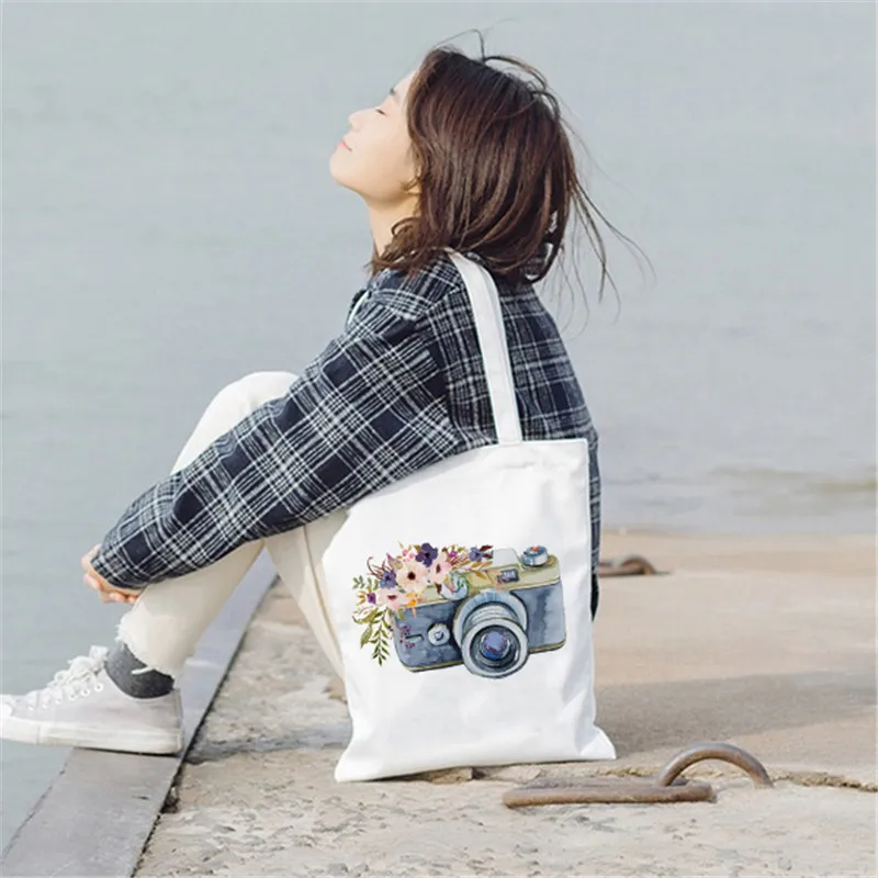 Большая Женская дорожная сумка-тоут через плечо, винтажная тканевая сумочка-тоут с графическим принтом для камеры, Экологически чистая многоразовая женская сумка-шоппер