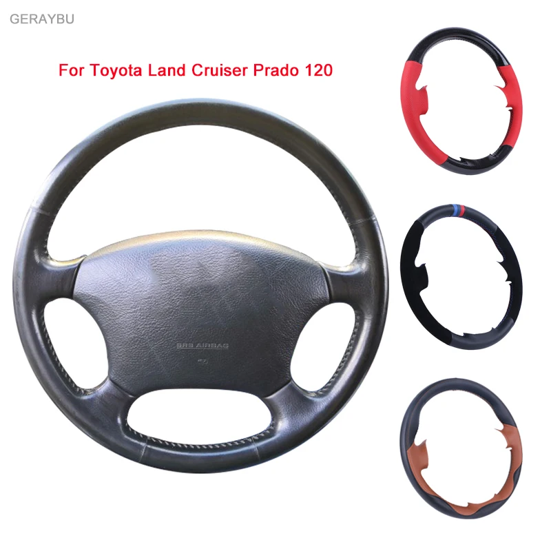 GERAYBU изготовленный на заказ DIY черный кожаный чехол рулевого колеса автомобиля ручной работы для Toyota Land Cruiser Prado 120 дышащий износостойкий