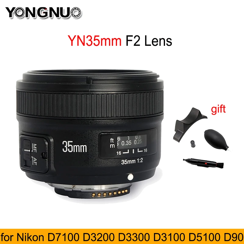 Объектив YONGNUO YN 35 мм F2.0, широкоугольный объектив с большой апертурой и автофокусом для Nikon F Mount D3200 D3400 D3100 для DLSR-камеры Canon