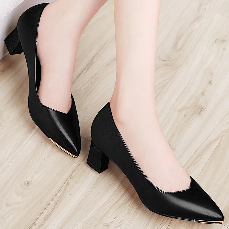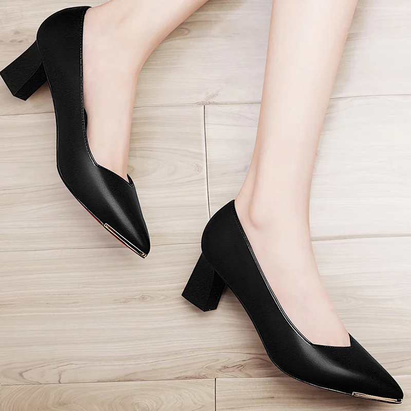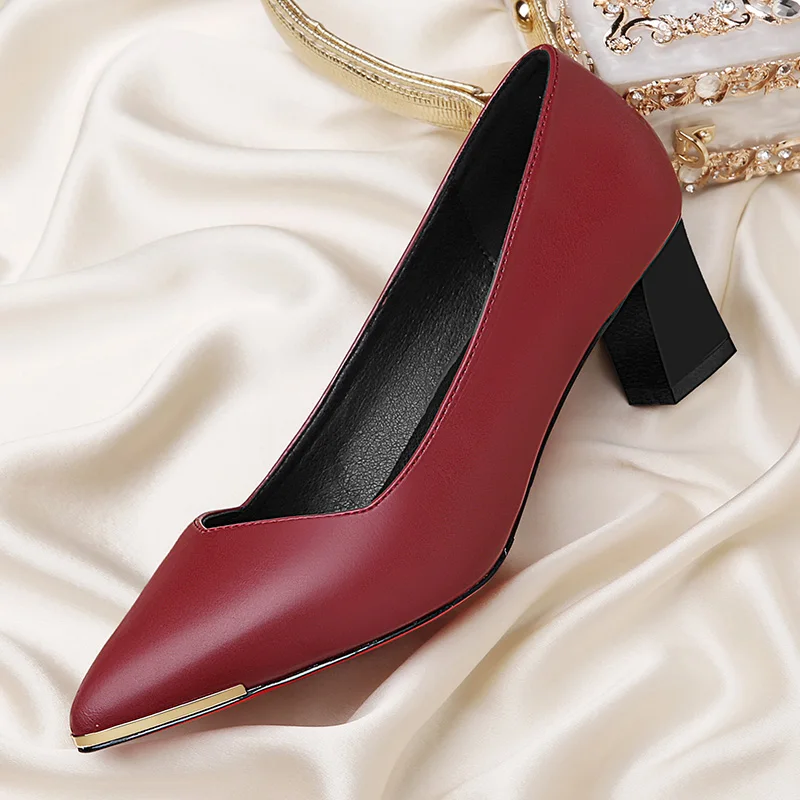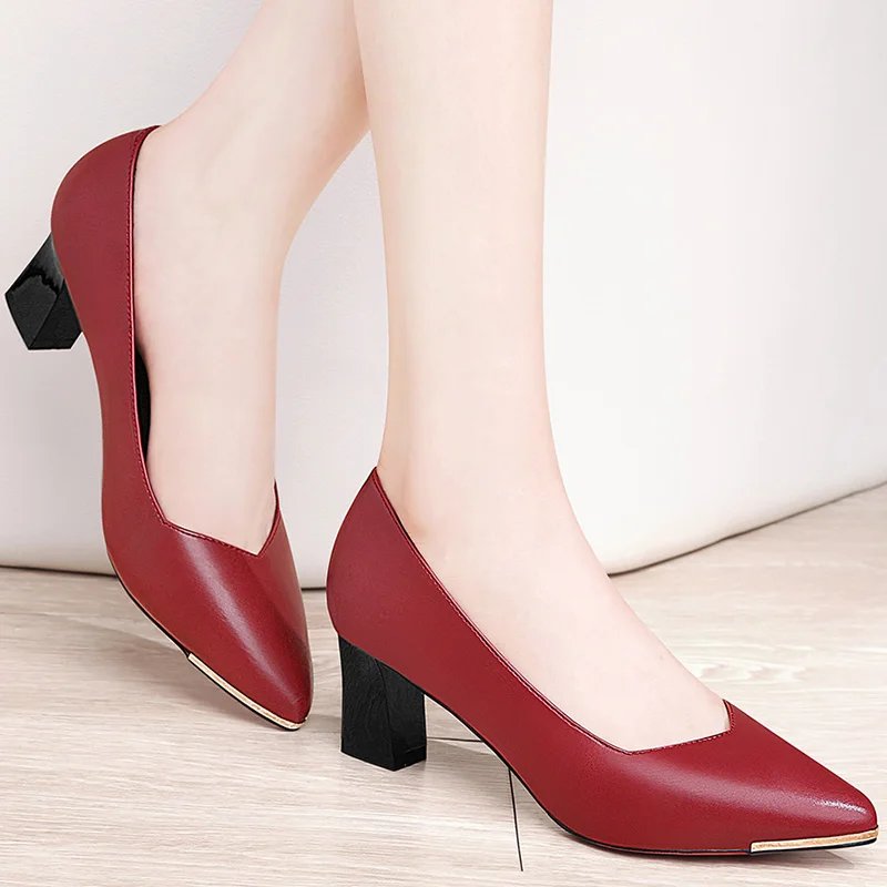 Women Dress Shoes Leather High HeelsShoes Ladies Wedding Shoes red Black