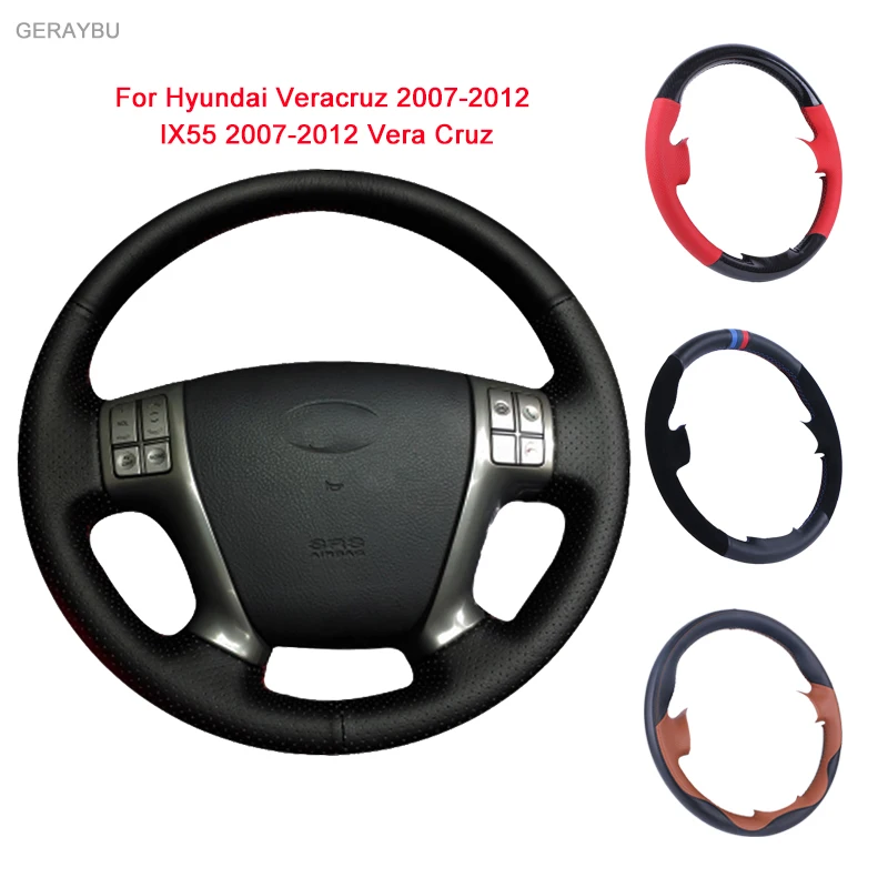 GERAYBU изготовленный на заказ DIY черный кожаный чехол рулевого колеса автомобиля ручной работы для Hyundai Veracruz 2007-2012 IX55 2007-2012 Vera Cruz