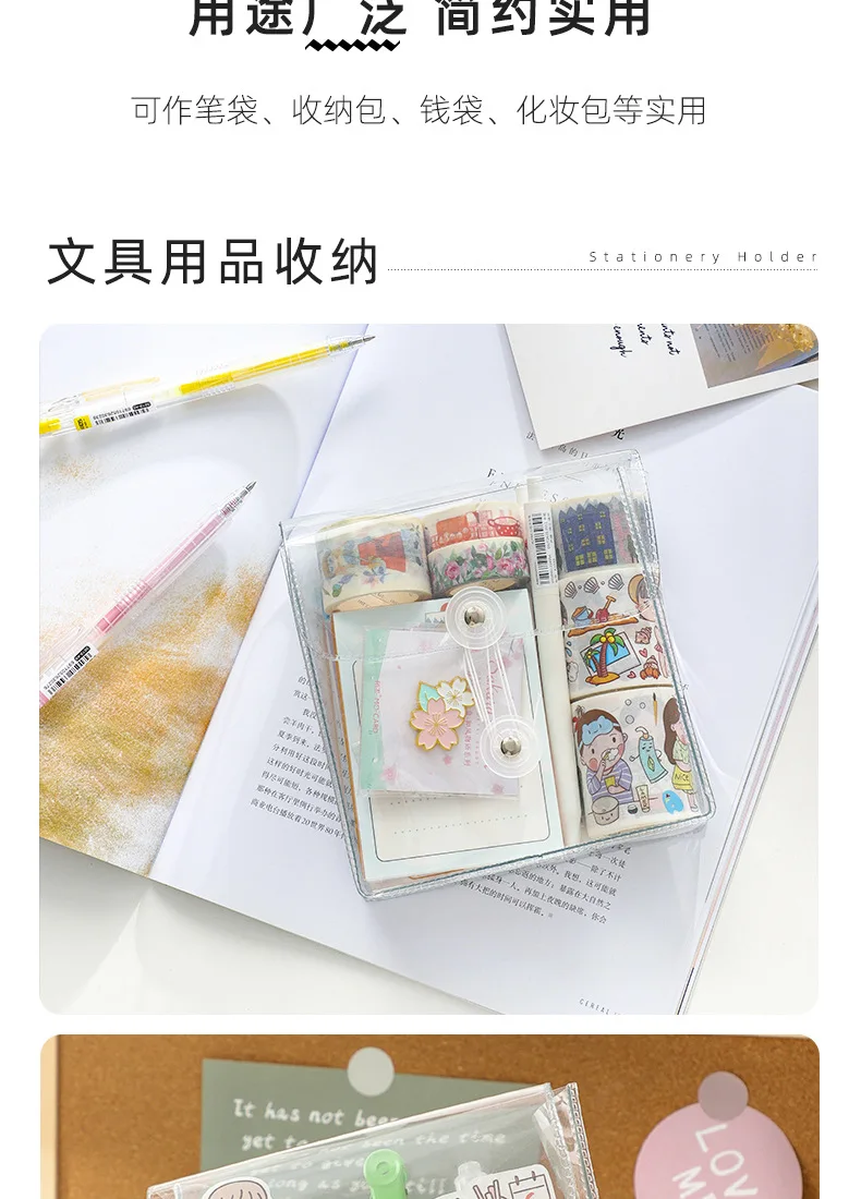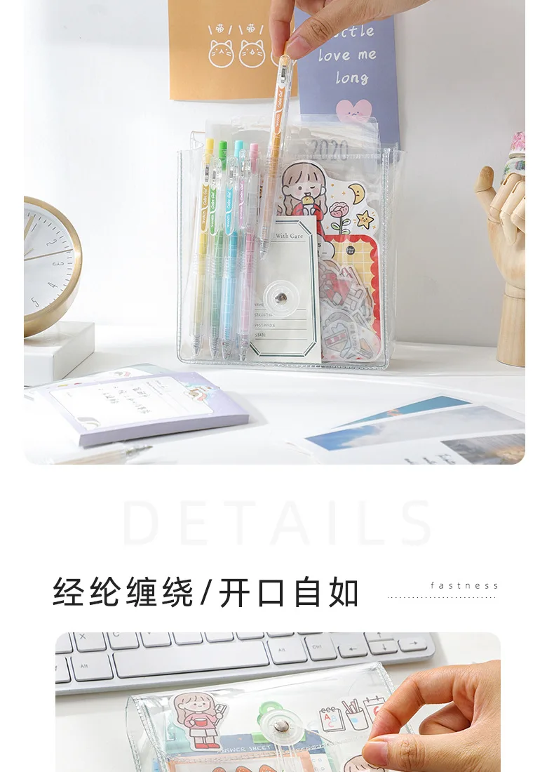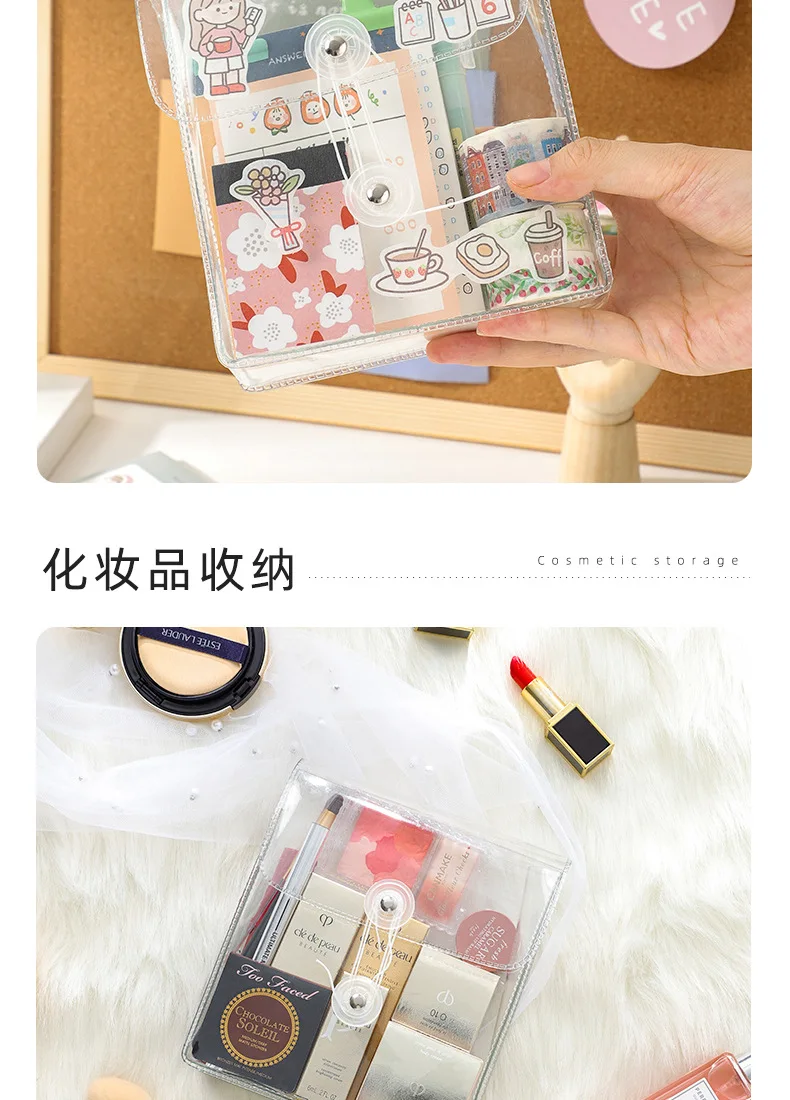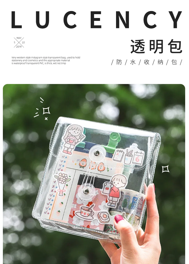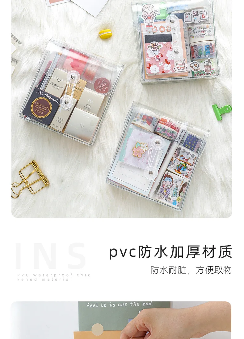 Прозрачная косметичка, водонепроницаемая сумка для карандашей из ПВХ, сумка для переноски туалетных принадлежностей, портативный органайзер, стикер, лента васи, аксессуары