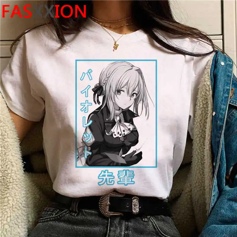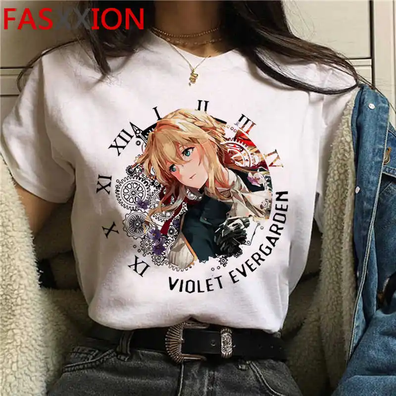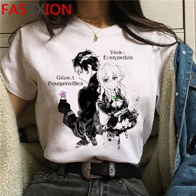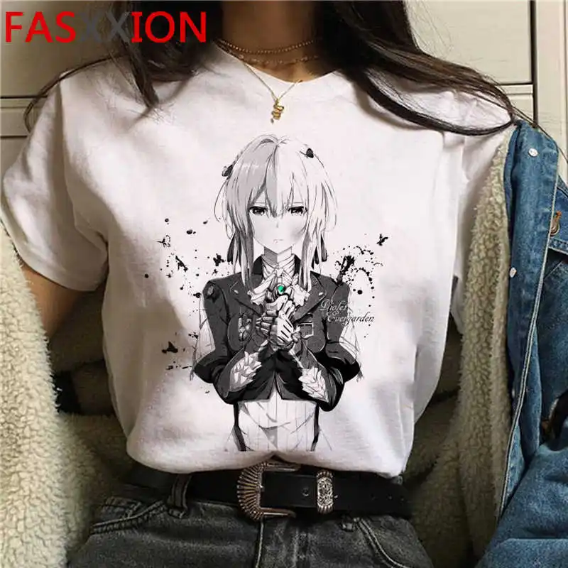 Футболка фиолетовая Evergarden, летний топ, мужские футболки с графическим принтом tumblr, белая футболка ulzzang, футболка kawaii tumblr