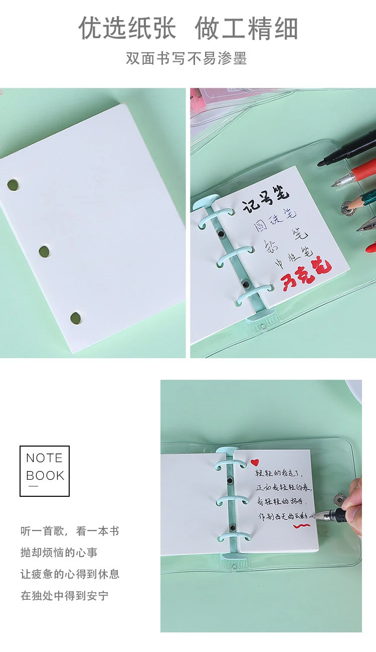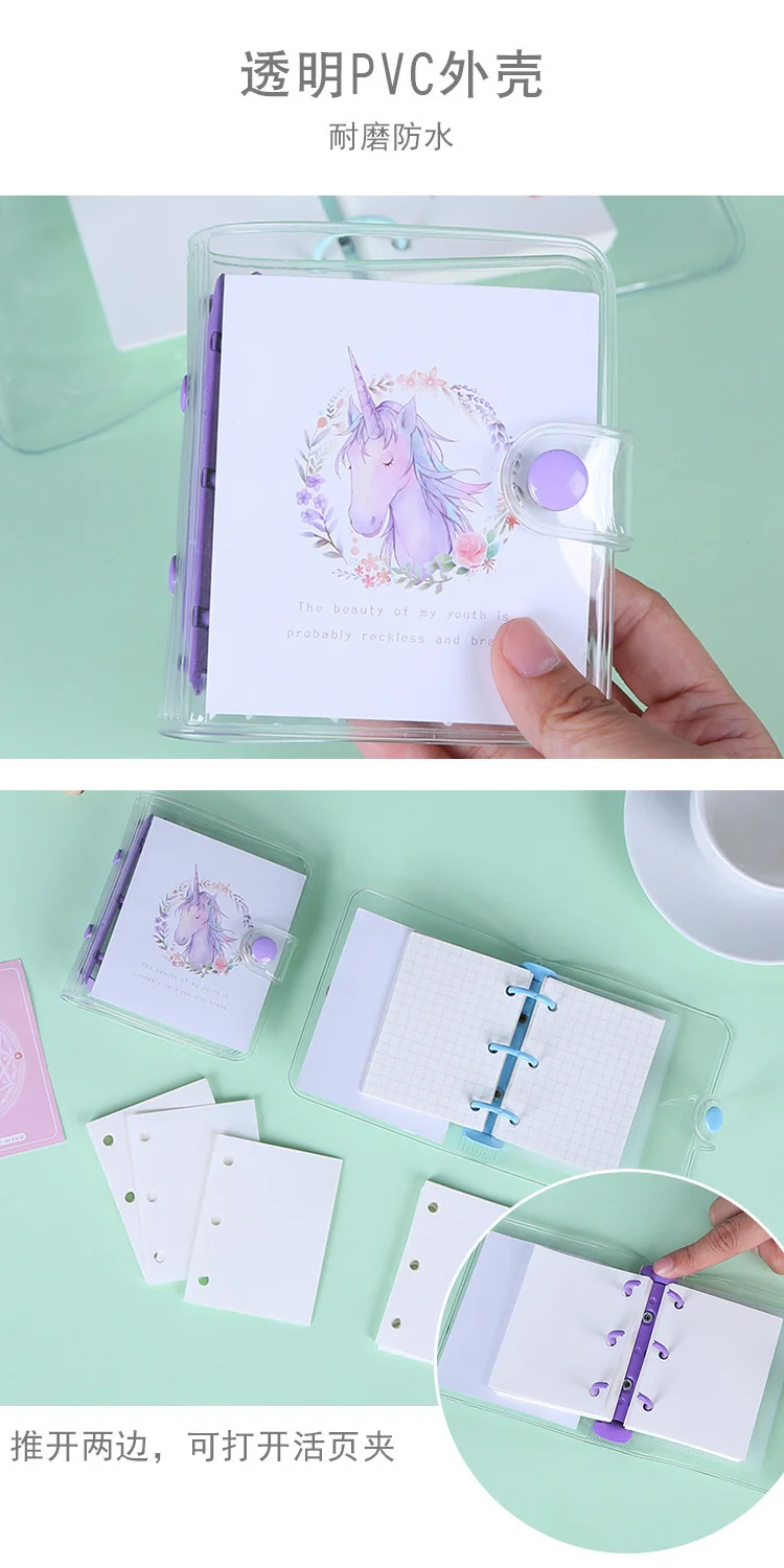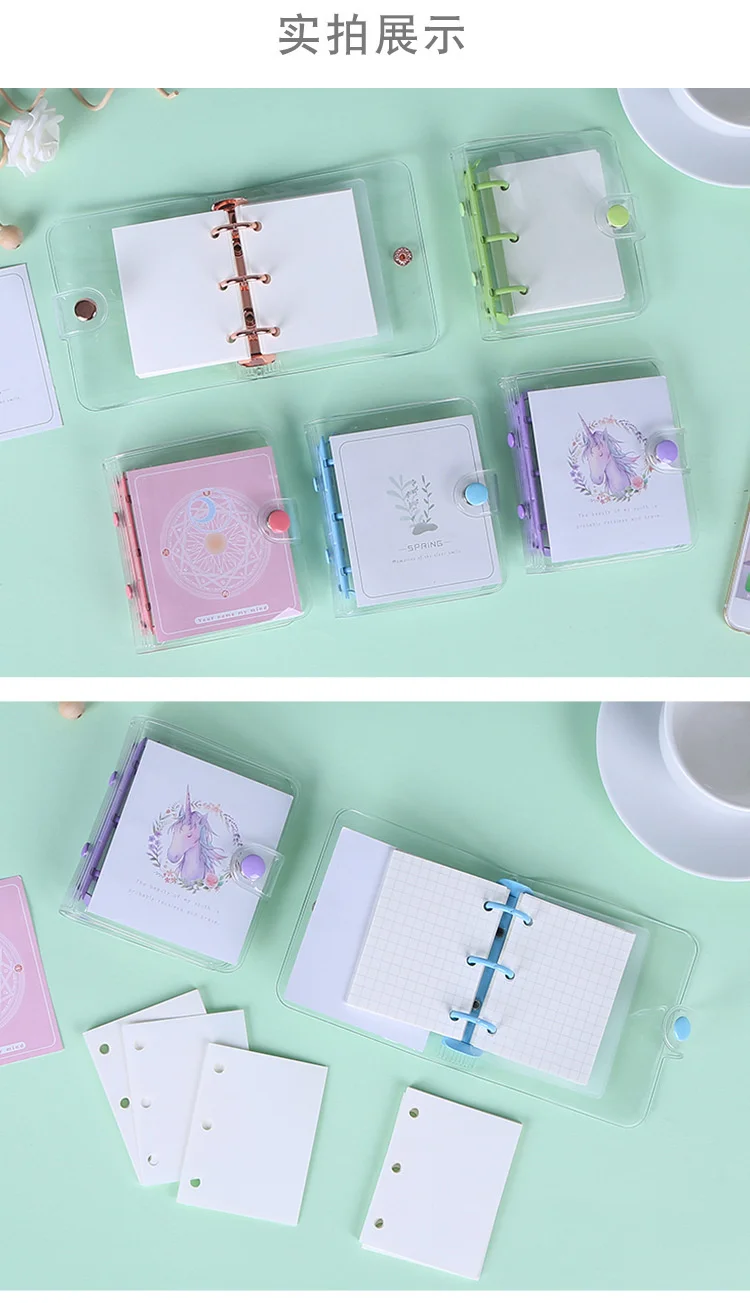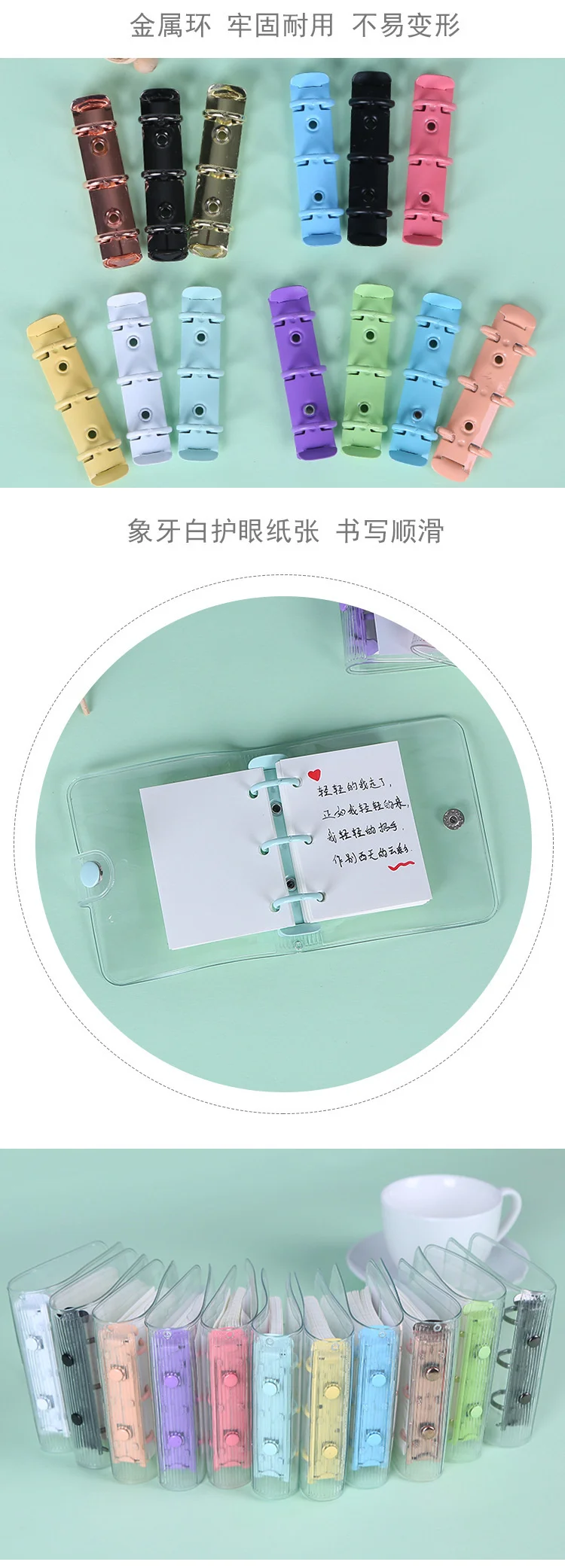 Необычная Милая прозрачная мини-книга с 3 кольцами и листьями, Студенческая портативная тетрадь с кольцами, милые школьные принадлежности