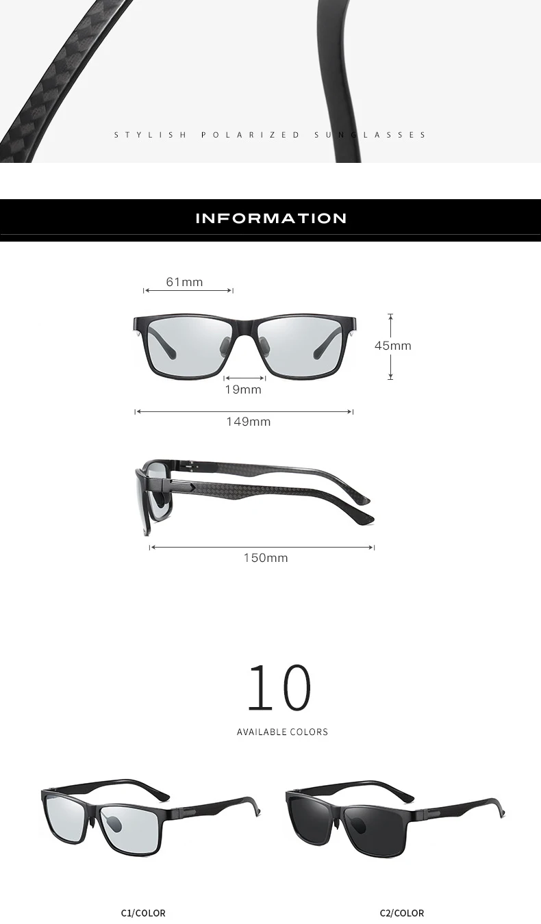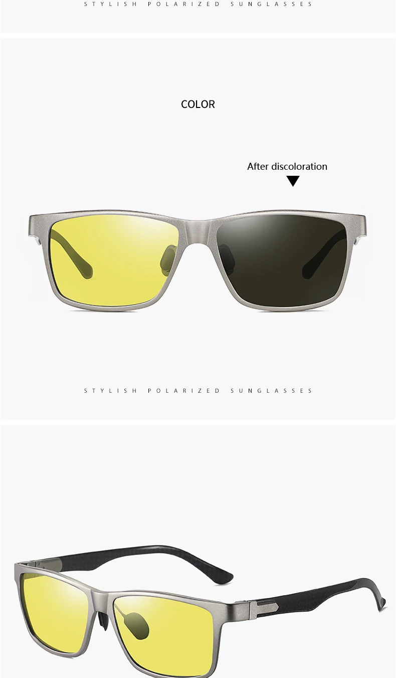 Мужские квадратные фотохромные очки VCKA, поляризационные солнцезащитные очки из углеродного волокна, очки дневного и ночного видения, очки для вождения