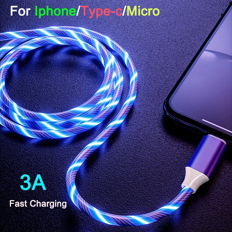Кабель USB Type-C, Micro USB, для IPhone 12 Pro Max, 11, XS, XR, X, 8, 7, 6S, светящийся, 3 а, с функцией быстрой зарядки