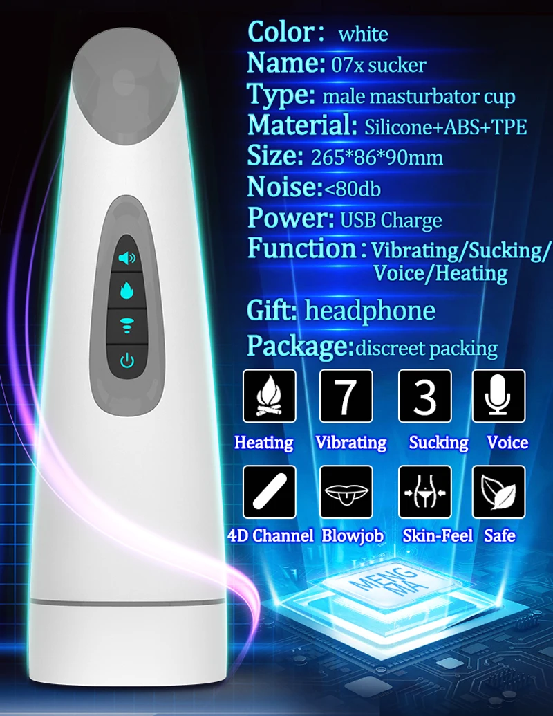 Сильный мужской мастурбатор с воздушным сосанием и подогревом, авто...