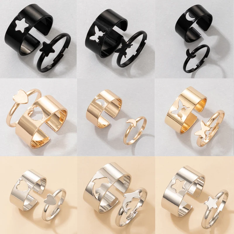 Комплект женских колец Tocona в виде бабочки и Луны, стильные ювелирные украшения из металлического сплава с полым сердцем и звездами для пар, свадебные украшения