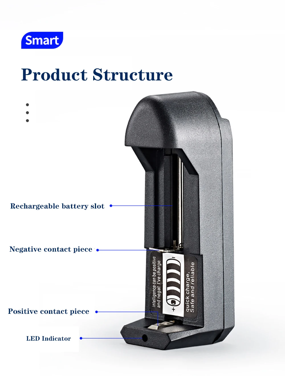 Название продукта: зарядное устройство 18650 с тремя слотамиМодель изделия: BH-042100-03UРежим питания: USB DC5VВходное напряжение: 5 В постоянного тока 1-2AВыходное напряжение: DC 4,2 V 1000mAРазмер изделия: 70*25*125 ммВес изделия: 94,5 г (с упаковкой)▶Совместимость с:10440, 14500, 16340, 16650, 18350, 18500, 14650, 18650, 26650, 18700, 21700 и другие литиевые батареиОсобенности:▶3 слота заряжаются независимо, не мешая друг другу.▶Двухцветный индикатор зарядки, красный светильник при зарядке, зеленый светильник при полной зарядке.▶Напряжение отключения зарядки составляет 4,23 в, и оно автоматически прекратится, когда полностью заряжено без перезарядки.