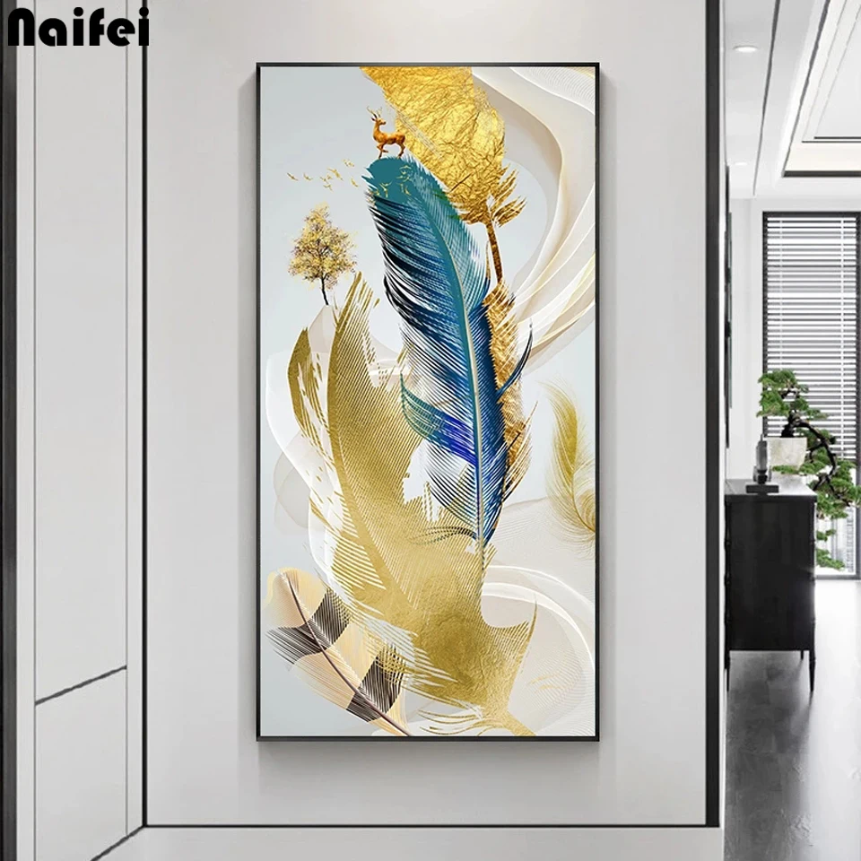 Diy Алмазная картина Золотое перо абстрактное искусство Алмазная вышивка полностью квадратная круглая Дрель Стразы Вышивка крестиком домашний декор