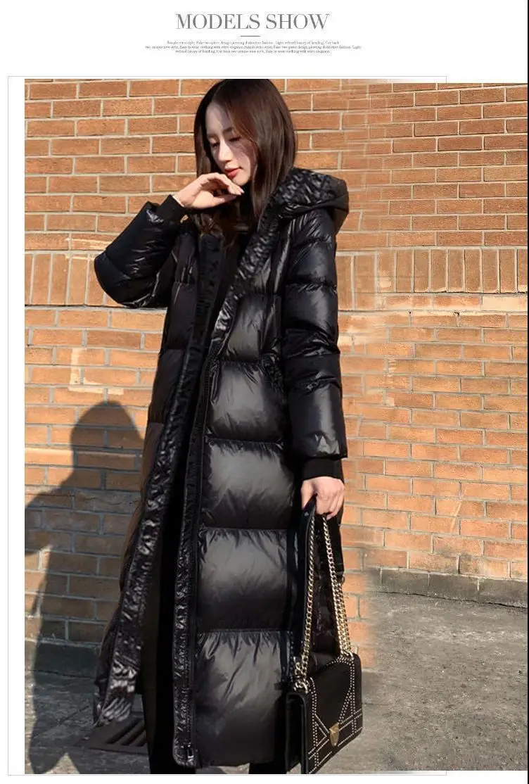 Женская ветрозащитная куртка, черная блестящая длинная куртка с капюшоном, непромокаемая теплая верхняя одежда, 2021