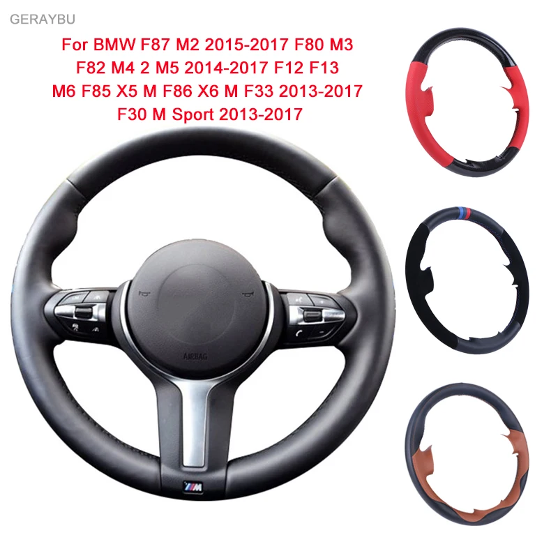 GERAYBU изготовленный на заказ DIY черный кожаный сшитый вручную чехол рулевого колеса автомобиля для BMW F87 M2 F80 M3 F82 M4 2 M5 F12 F13 M6 F85 X5 M F86 X6