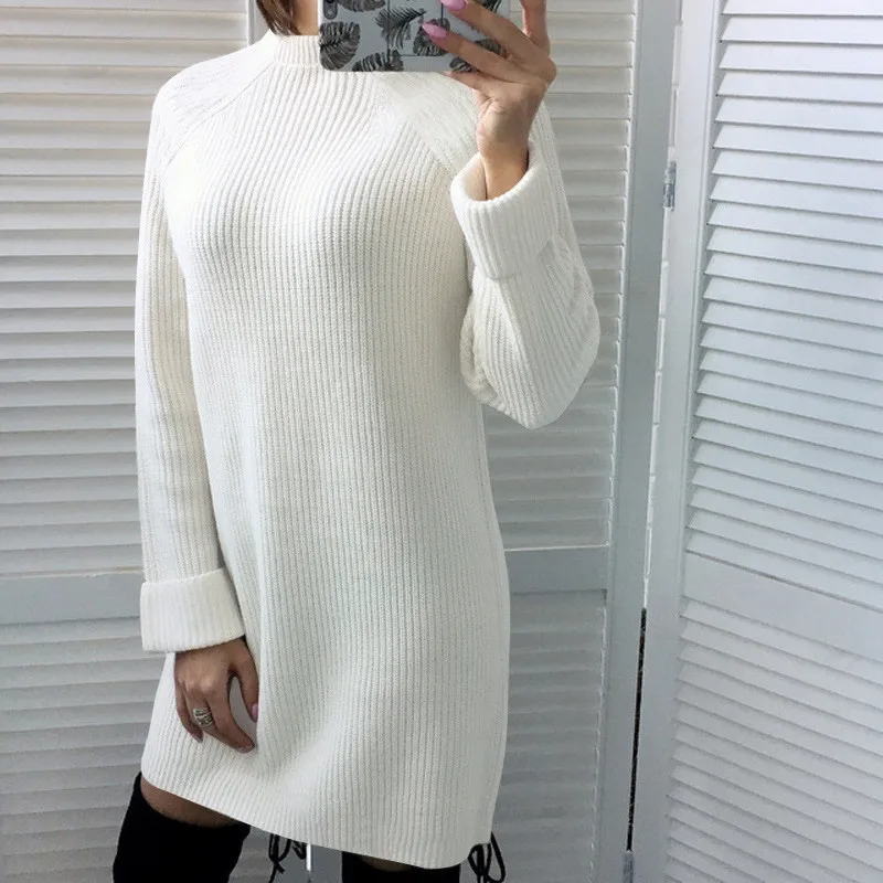 Женское трикотажное мини-платье, с воротником-хомутом и длинным рукавом, Осень-зима