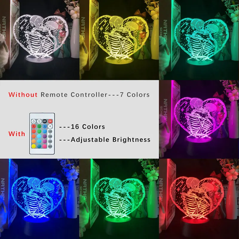 СВЕТОДИОДНЫЙ ночник в виде черепа, 3d лампа для спальни, прикроватный ночник, креативный подарок для детей на день рождения, День Святого Валентина, декор комнаты, ночник