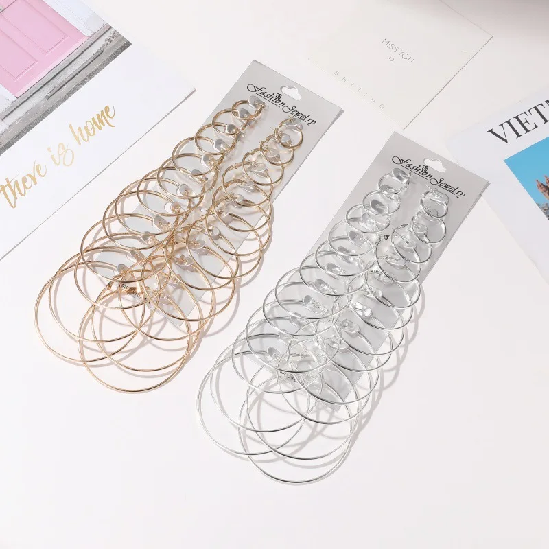 Набор из 6 12 пар, серьги-кольца в стиле панк, большие круглые серь...